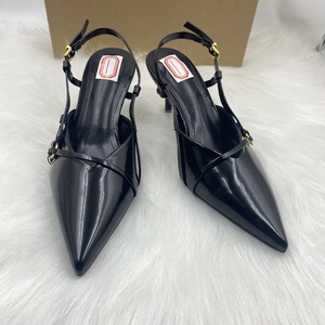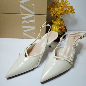 ZA2025夏季新款法式漆皮尖头细带装饰露跟浅口细高跟鞋后搭扣女鞋