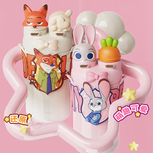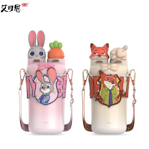 艾可思新款玩趣保温杯儿童316不锈钢吸管杯学生户外创意双饮杯子