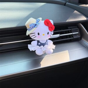 带草帽的Kitty车载挂件新款毛绒公仔汽车后视镜挂饰出风口夹摆件