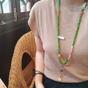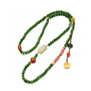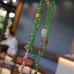 正宗国风天然和田玉碧玉项链108颗佛珠毛衣链南红蜜蜡红纹石套链