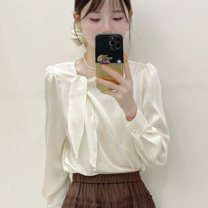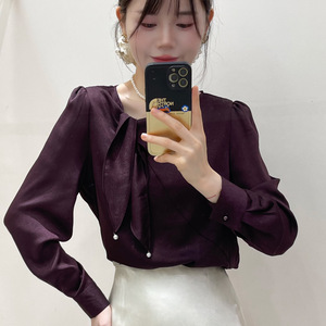2025秋季新款圆领宽松显瘦雪纺衫洋气小衫长袖女上衣6089