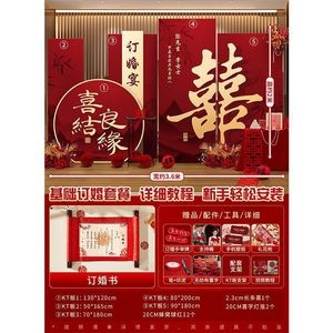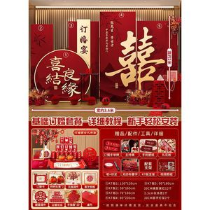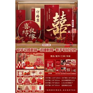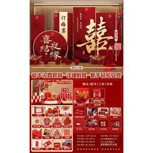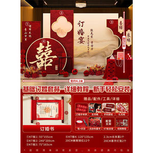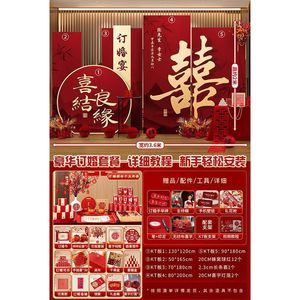 中式订婚宴高级布置装饰大气摆件仪式感全套板背景墙套餐