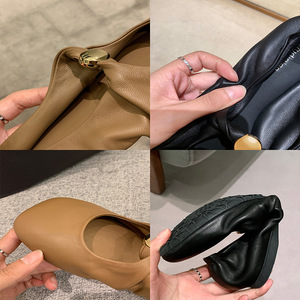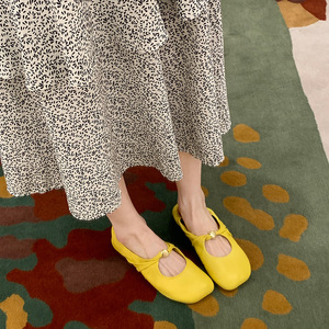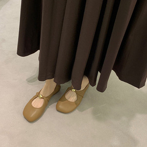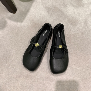 羊皮版!葡萄妈同款扭结小金扣时髦苹果头软糯羊皮低跟单鞋女春秋
