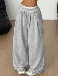 跨境抽绳松紧腰灰色阔腿卫裤女春秋高腰垂感直筒宽松拖地休闲裤