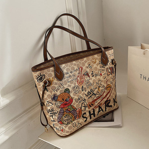 韩版小众涂鸦印花休闲包大容量包包2025新款手提单肩大包托特包女