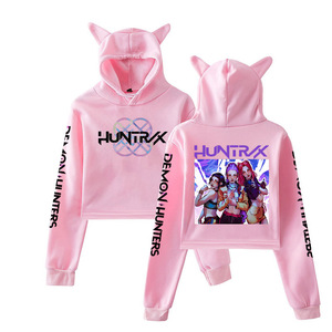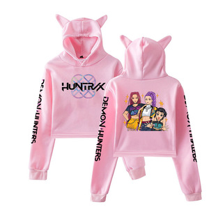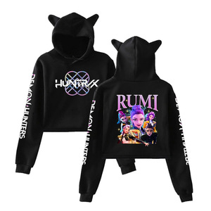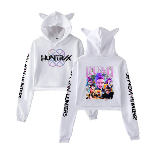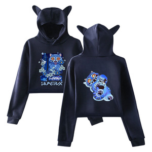 2025跨境新品KPop Demon Hunters欧美时尚猫耳朵露脐卫衣女代发2
