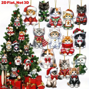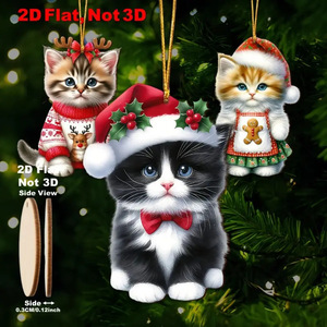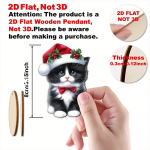 跨境新款木制平面圣诞节圣诞树可爱猫咪装饰挂件
