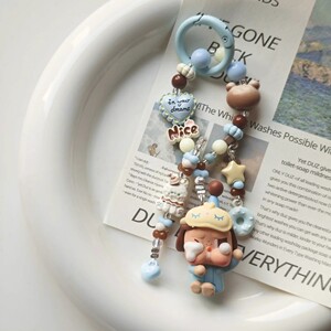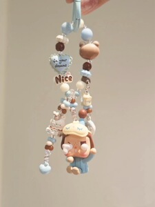 手作泡泡哭娃小提溜卡通可爱手绘珠手机挂绳防丢链条彩色串珠链