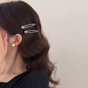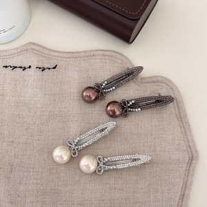 简约风镶钻珍珠鸭嘴夹椭圆夹高级感精致刘海侧边刘海夹发卡发饰女