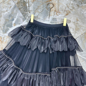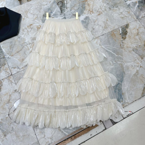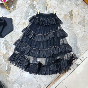 南油欧美澳洲网纱蛋糕裙半身裙链条荷叶边设计感松紧腰长裙