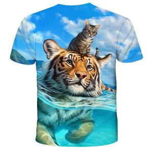 2025跨境新款 老虎3D数码印花动物休闲短袖T恤衫