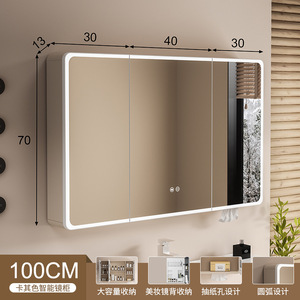 奶咖色100*70cm(智能款)美妆镜柜-加厚铝材