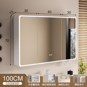奶白色100*70cm(智能款)美妆镜柜-加厚铝材
