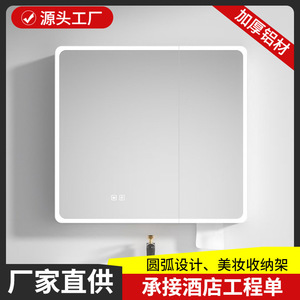 太空铝圆弧形浴室镜柜智能灯光储物柜卫生间挂墙式带梳妆镜抽纸