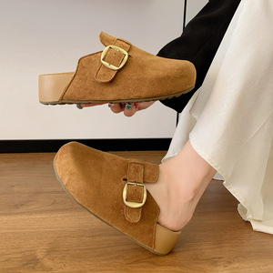 厚底增高勃肯拖鞋女2025秋新款真皮包头外穿半拖鞋高质感懒人鞋拖