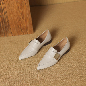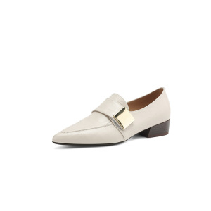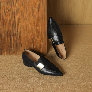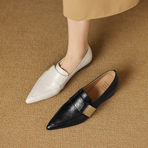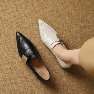 2025秋新款优雅尖头一脚蹬舒适低跟通勤单鞋女时尚金属粗跟小皮鞋