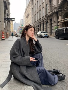 【烟灰曼塔】大翻领毛呢外套女长款宽松慵懒双面羊绒大衣秋冬新品