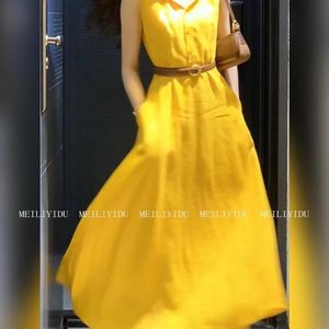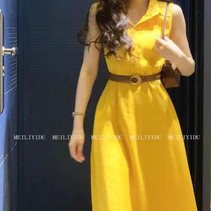 黄色子女polo领无袖背心长裙收腰2025夏季法式新款显瘦衬衫连衣裙