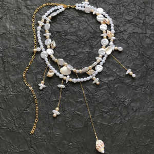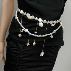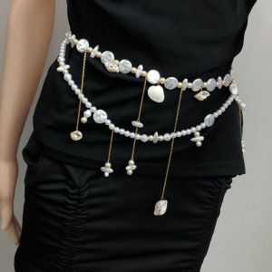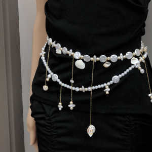 海边沙滩珍珠贝壳海螺流苏双层腰链时尚休闲度假风小众腰带装饰女