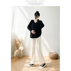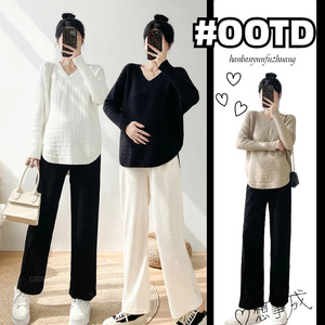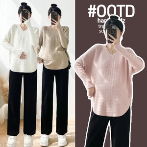 好质量孕妇装套装2025秋装孕妇针织衫阔腿裤孕妇两件套
