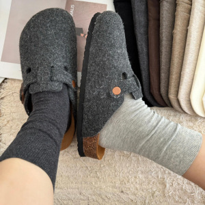 秋冬基础款平纹中筒袜无骨纯棉米色袜子女配勃肯鞋月子袜堆堆袜