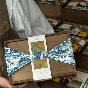 复古抽拉空盒约27*19.5*10cm+礼遇中秋封条+蓝色印花包布一个