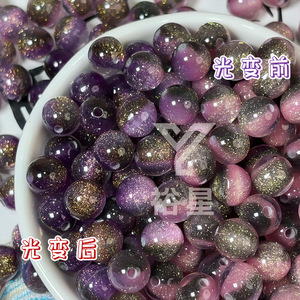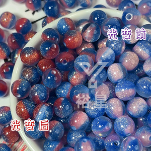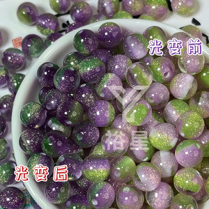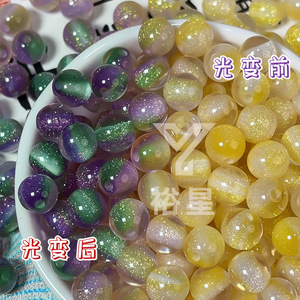 UV紫外线遇光变色树脂夜光溏心圆珠手工diy串珠散珠饰品配件材料