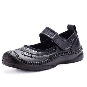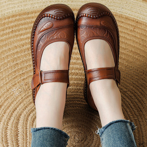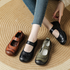 真牛皮2025夏季新款复古民族风女鞋单鞋厚底魔术贴凉鞋舒适妈妈鞋
