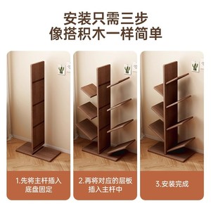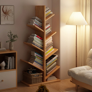 实木书架树形置物落地储物家用客厅简易窄小书靠墙边纳学生绘本架