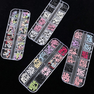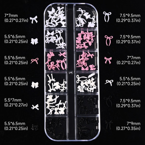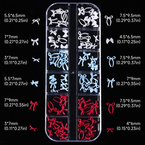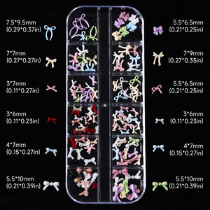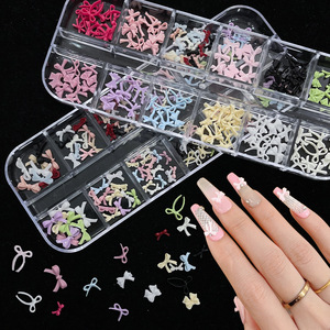 12格蝴蝶结美甲饰品跨境爆款彩色立体树脂飘带蝴蝶结指甲装饰批发