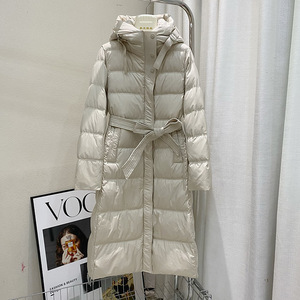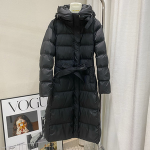 2025新款羽绒服女长款过膝白鸭绒加厚收腰显瘦腰带款外套女装批发