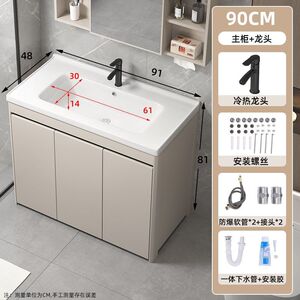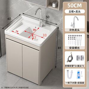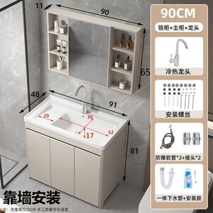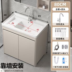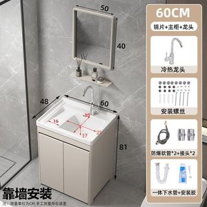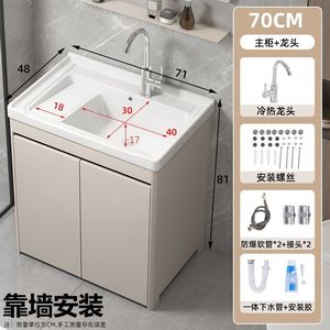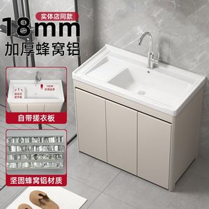 蜂窝铝阳台卫生间洗衣柜一体陶瓷洗衣盆带搓板水槽落地浴室柜组合
