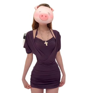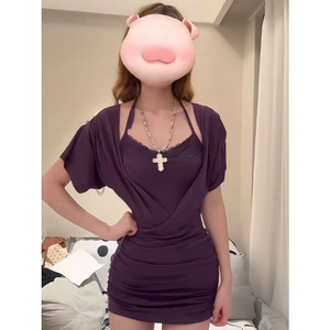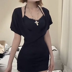 2025流行纯欲小妈感连衣裙包臀裙蕾丝掐腰显瘦显身材短裙两件套女