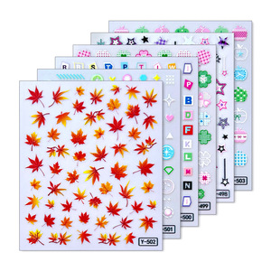 跨境新款秋季枫叶黄金叶子美甲贴纸5d浮雕感恩节红枫树叶指甲贴纸