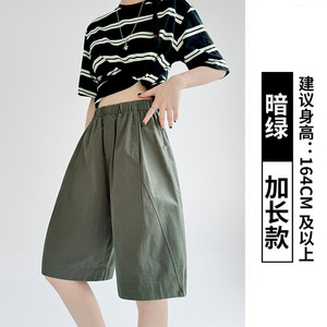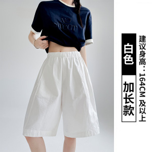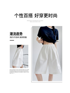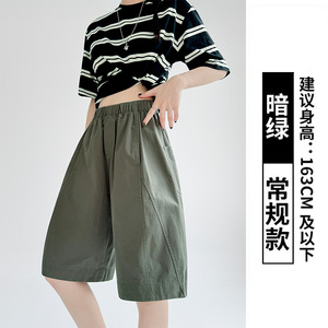 全包边水洗纯棉短裤女夏外穿新款高腰a字阔腿裤小个子工装五分裤