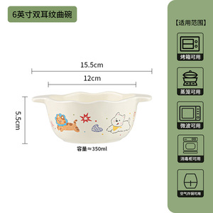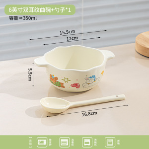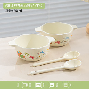 两件套【6寸双耳纹曲碗+勺子】四小只