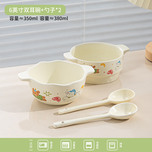 四件套【6寸双耳纹曲碗X2+勺子X2】四小只