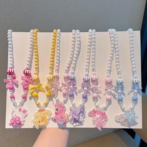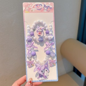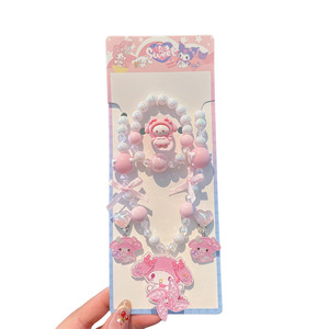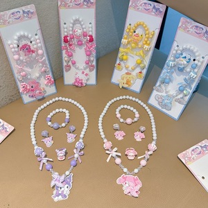 韩版甜美流行儿童首饰串珠项链手链耳夹5件套儿童项链手链套装