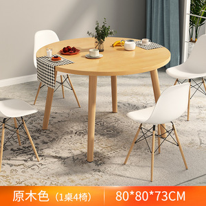 实木腿餐桌圆形苹果木80*80一桌四椅