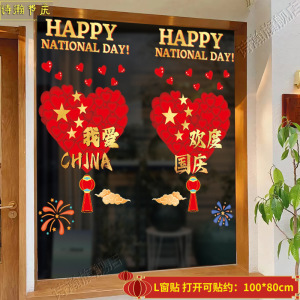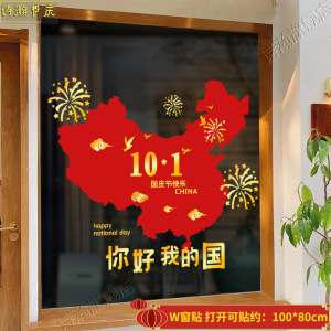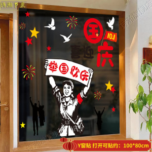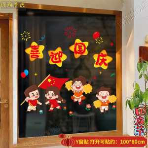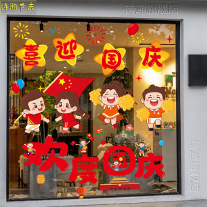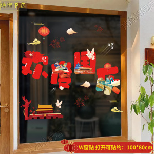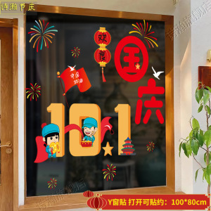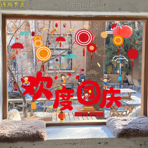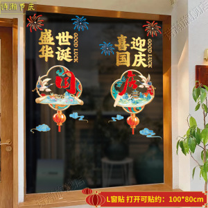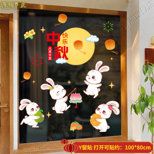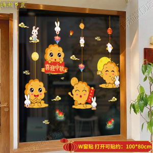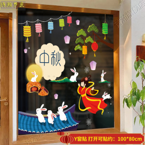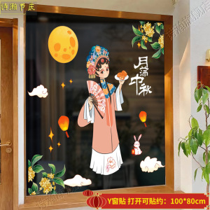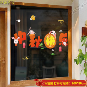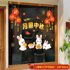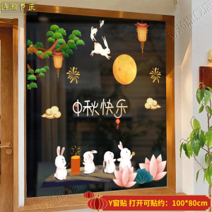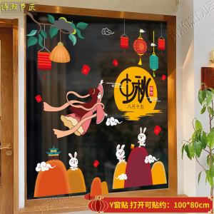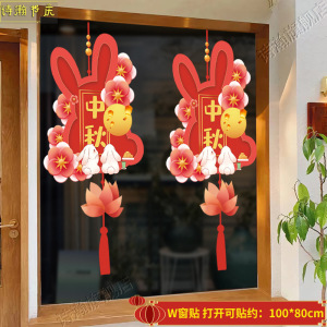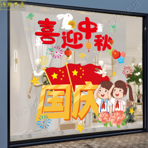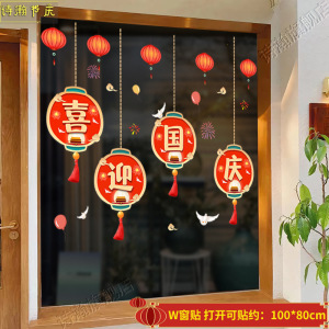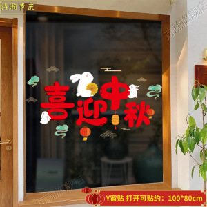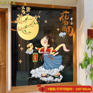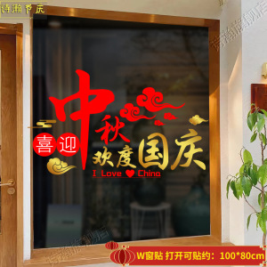 中秋国庆节装饰用品珠宝店橱窗玻璃窗贴静电贴静电贴窗贴场景布置