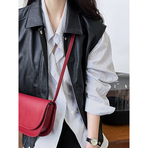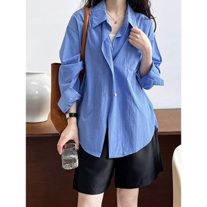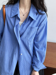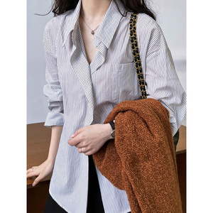 NS港风气质条纹衬衫女春季慵懒宽松盐系外穿落肩袖衬衣外套7059