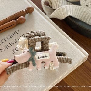 韩国ins新款充棉小狗蝴蝶结发夹 可爱高级感盘发夹鲨鱼夹抓夹发饰