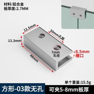 铝方形斜边小号/沙银(夹6-8)无孔款