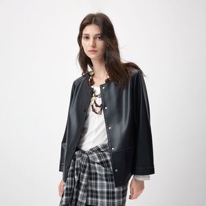 圆领洋气时尚绵羊皮短外套女新款气质通勤真皮皮衣工厂现货批发