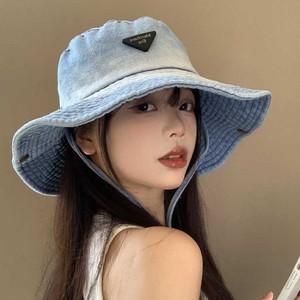 秋季新款水洗牛仔户外登山帽女大头围渔夫帽遮阳防晒西部牛仔帽子