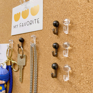 风黑白透明图钉挂钩形状按钉软木板毛毡板挂项链钥匙扣用钉子