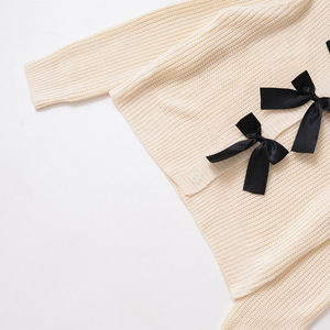 速卖通批发秋季新款女装百搭圆领长袖撞色蝴蝶结饰针织开衫上衣