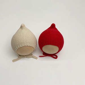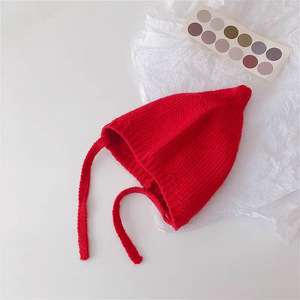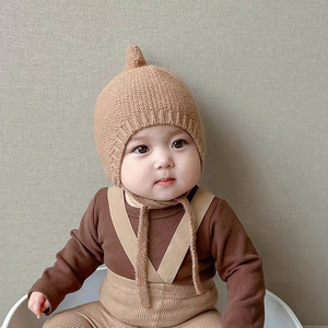 婴儿帽子护耳ins秋冬新生儿毛线针织套头护头囟门帽初生宝宝胎帽