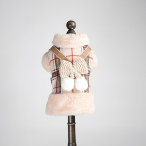宠物衣服秋冬新款小型犬幼犬快乐狗猫保暖舒适毛球蝴蝶结马甲