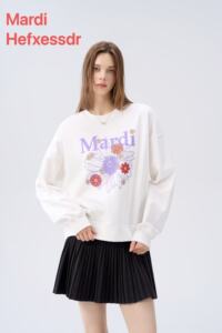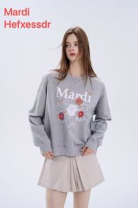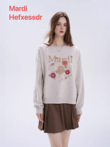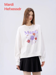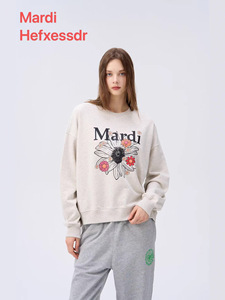 女装新款Mardi Hefxessdr卫衣多花雏菊刺绣休闲宽松圆领女上衣